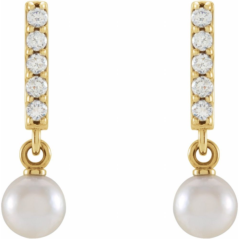 14K Yellow Gold Cultured Akoya Pearl & Diamond Bar Earrings