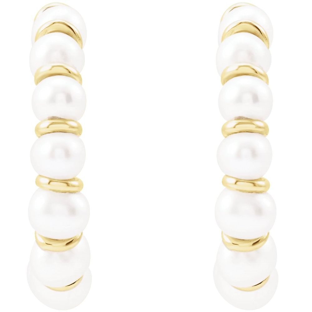 14K Yellow Gold Cultured Pearl Hoop Earrings