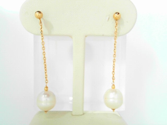 14K Yellow Gold Cultured Pearl Threader Earrings