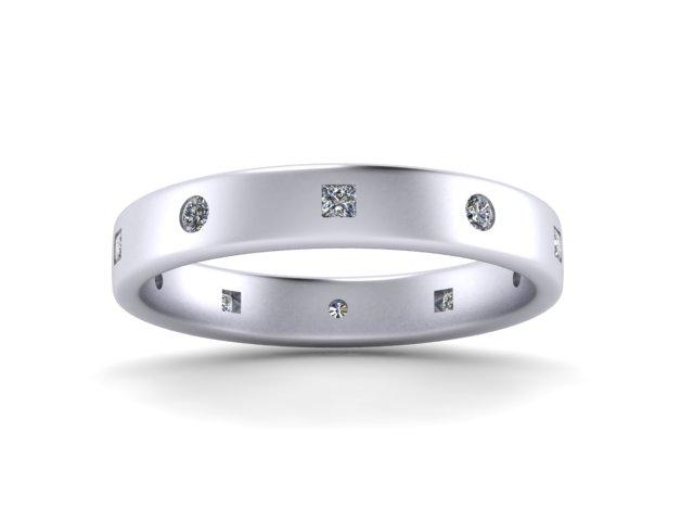 This design features alternating Round Brilliant and Princess cut Lab grown diamonds. VS/F, .35ctw. Size: 11 - 12