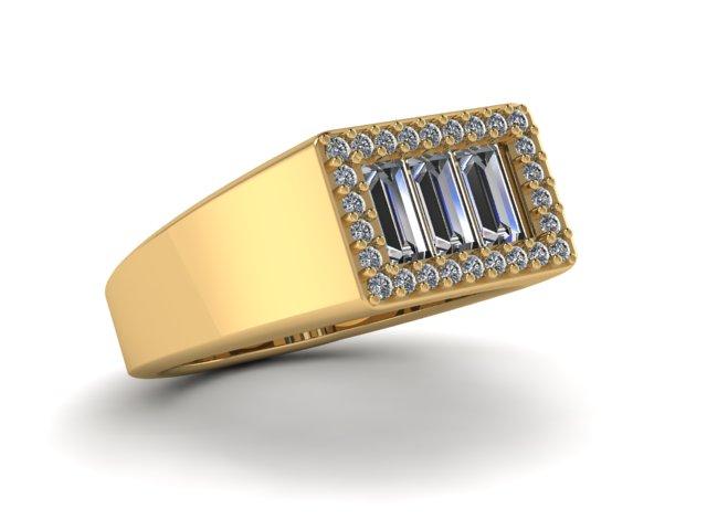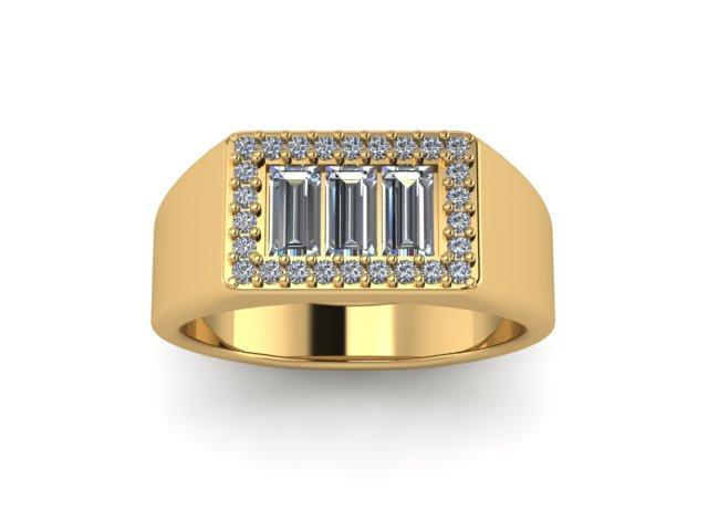 This design features 3 baguette cut Lab Grown Diamonds that are set in a channel surrounded by Brilliant round Lab Grown Diamonds VS/F, 1.00 ctw. Size: 6-12