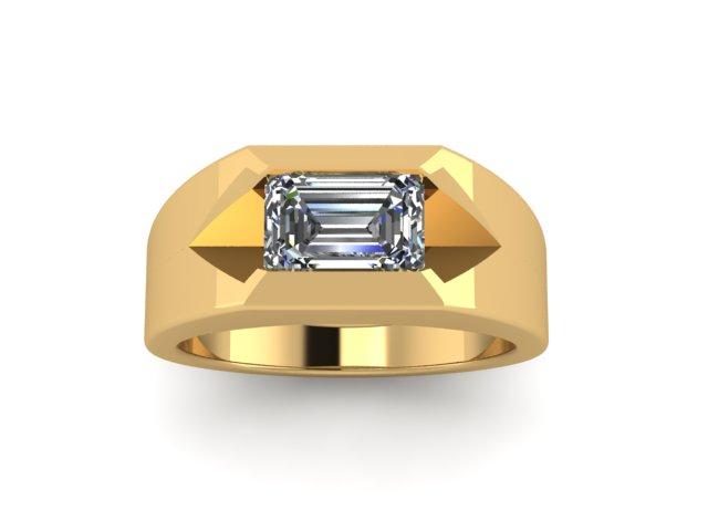 This Modern design features a 2.5ct Lab Grown Emerald Cut center diamond (VS/F), precisly set in an angular channel.