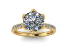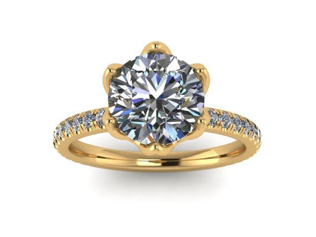 Our Delicate Olivia design in 18kt white gold featuring a 2ct round lab grown diamond surround by floral inspired prongs that embrace beauty from all angles. VS/F, 2.50ctw.