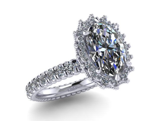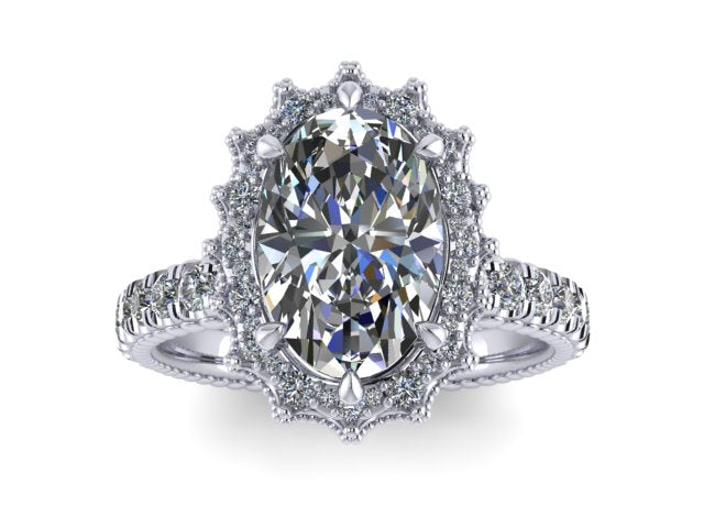 Olivia Oval Halo Engagement Ring in 18K White Gold