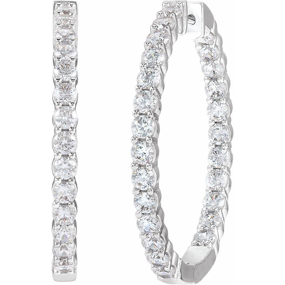 14K White Gold Lab Grown Diamond Hoop In and Out earrings - 4ctw