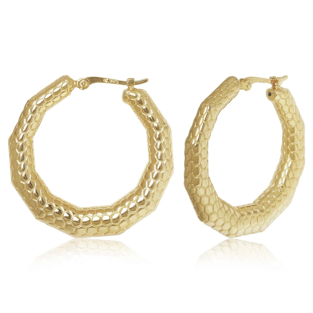 14kt yellow gold Honeycomb Textured Hoop Earrings