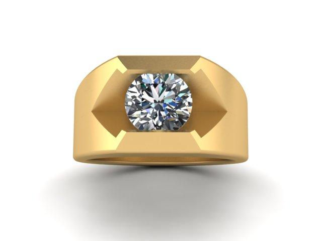 V Channel Round Lab Grown Diamond Ring in 14K Royal Yellow Gold.