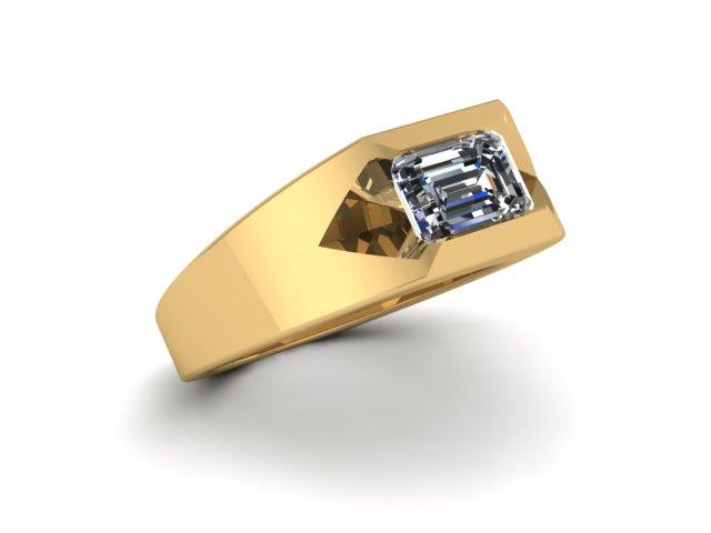 V Channel Emerald Cut Lab Grown Diamond Ring in 14K Royal Yellow Gold.