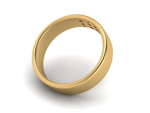 Ring Size: 11 - 12 14Kt royal yellow gold band with "9" round lab grown diamonds set in a tapered pattern. VS/F, .15ctw.