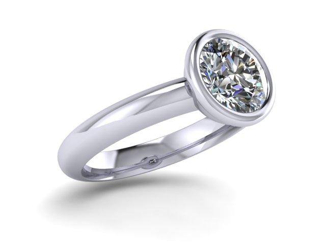 Simple, clean and classic bezel design set with a certified (1.50ct) Round Lab Grown Diamond in the center VS/ F.