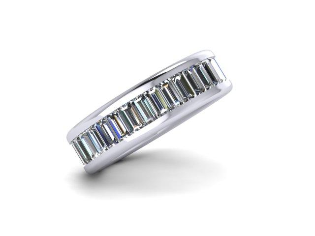 This comfort fit design features baguette cut Lab Grown Diamonds that are individually selected, matched and channel set with maximum brilliance. VS/F 3.65 cwt..