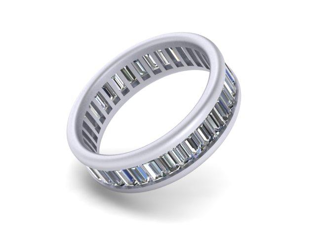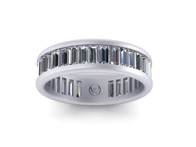 This comfort fit design features baguette cut Lab Grown Diamonds that are individually selected, matched and channel set with maximum brilliance. VS/F 3.25-3.50 ctw.