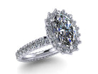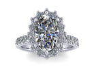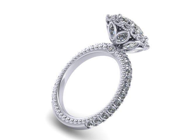 Elegant and architecturally inspired designe featuring a 2ct oval lab grown diamond surround by windows of light that refract its beauty from all angles. VS/F, 3ctw.