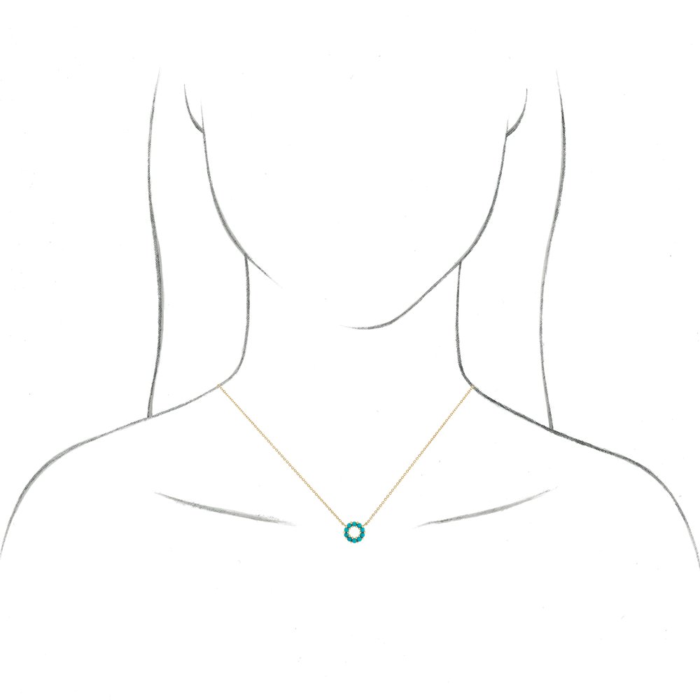14K White Gold Natural Turquoise Circle Necklace
