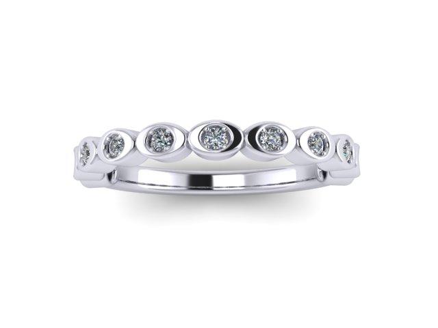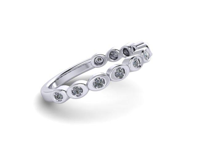 This eliptical design features Brilliant round Lab Grown Diamonds. VS/F, .56ctw. Size 4-9