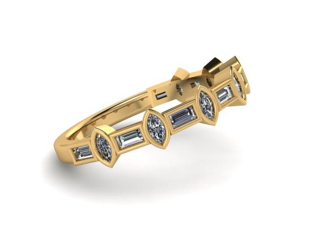 This design features alternating marquise cut and baguette cut Lab Grown Diamonds. VS/F, .52ctw.