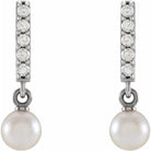 14K White Gold Cultured Akoya Pearl & .03 CTW Natural Diamond Bar Earrings - 11.52mm