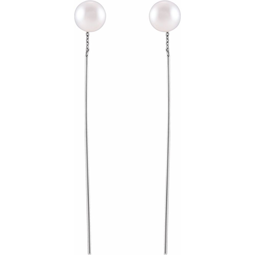 14K White Gold Cultured White Freshwater Pearl Threader Earrings