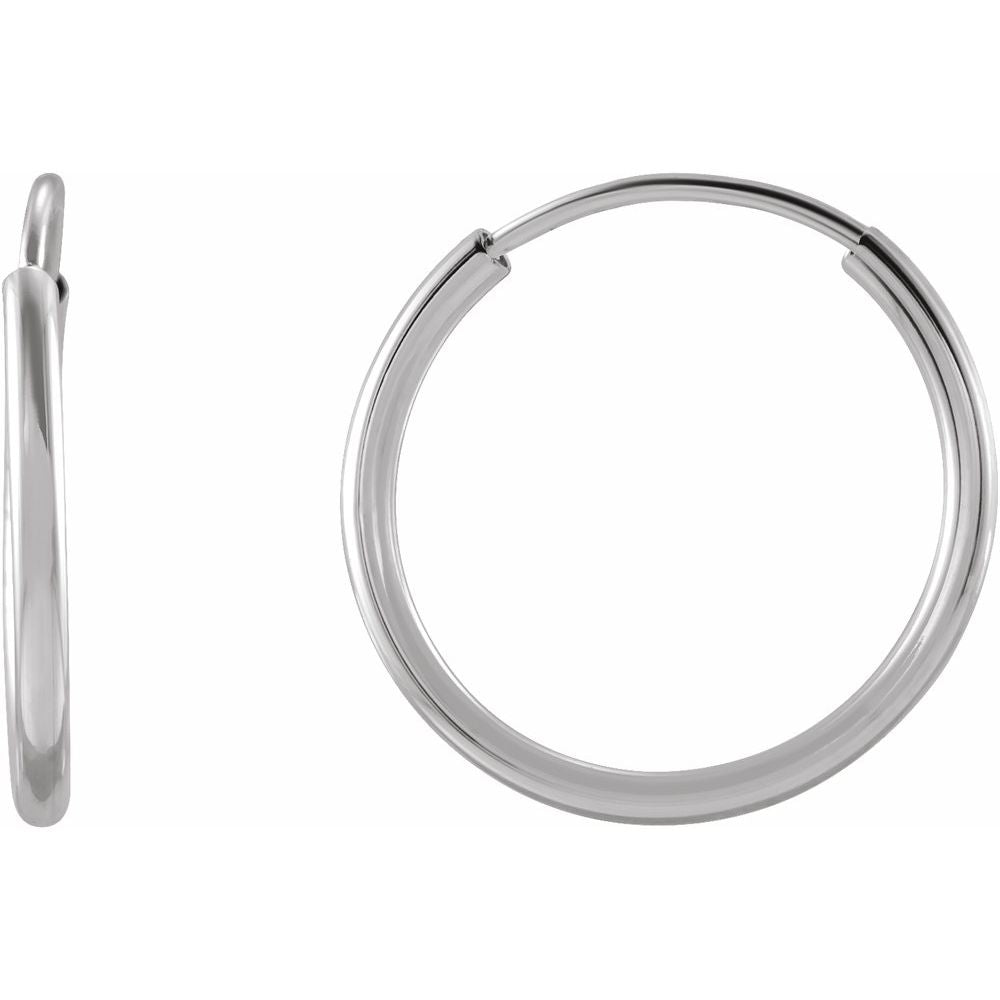 14K White Gold Flexible Endless Tube Hoop Earrings - 12mm