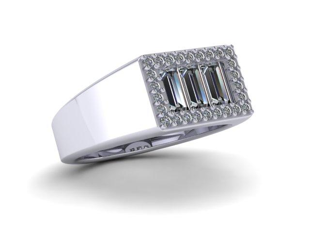 This design features 3 baguette cut Lab Grown Diamonds that are set in a channel surrounded by Brilliant round Lab Grown Diamonds VS/F, 1.00 ctw. Size: 6-12