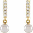 14K Yellow Gold Cultured Akoya Pearl & Diamond Bar Earrings