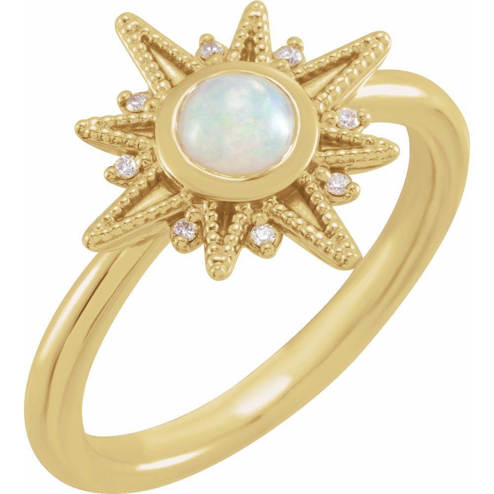 14K Yellow Gold Natural White Ethiopian Opal & .03ctw Natural Diamond Ring