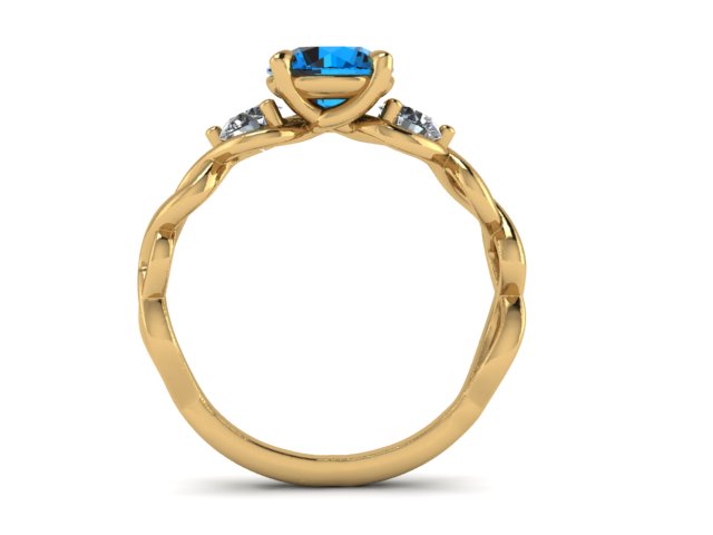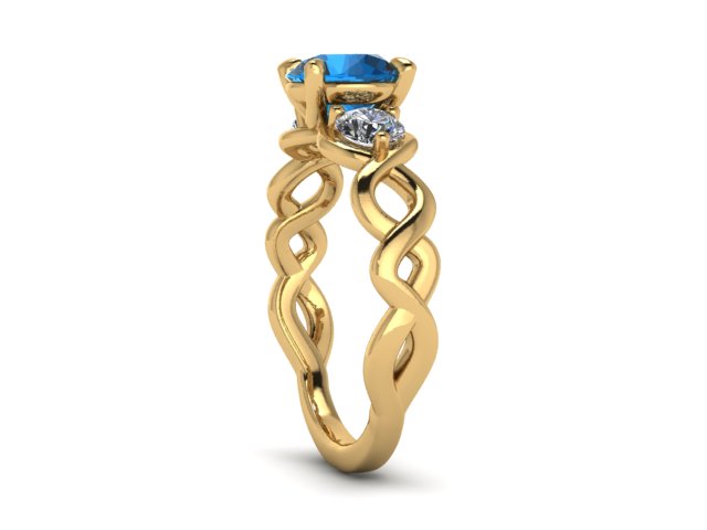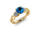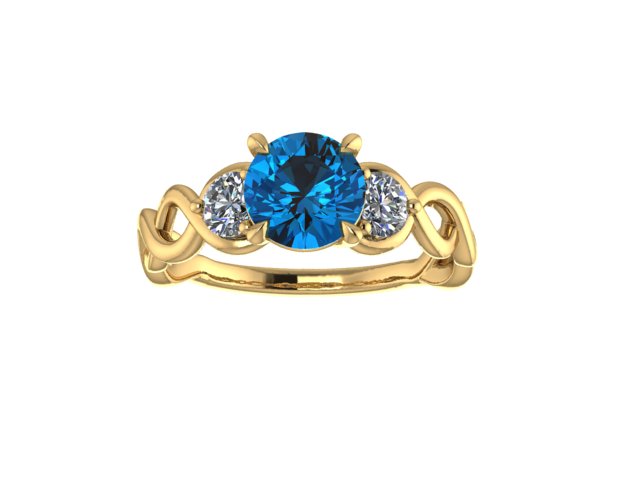 This classic design features a 1.80ct Round London Blue Topaz set in a weave pattern setting with 2 Brilliant round Lab Grown Diamonds 0.41ctw, VS/F